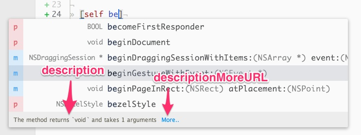 These parameters are meant to provide extra information about your snippet to autocomplete-plus.