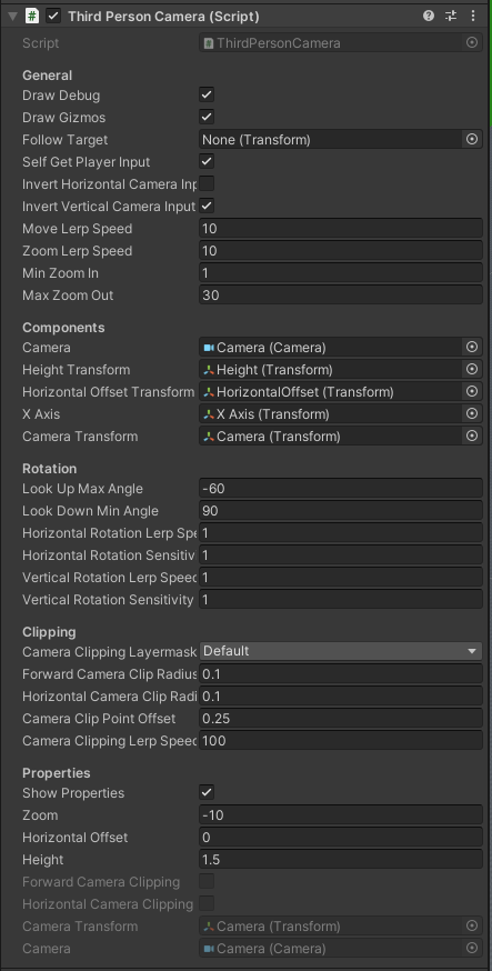 Nearly every field on the ThirdPersonCamera component has a tooltip.