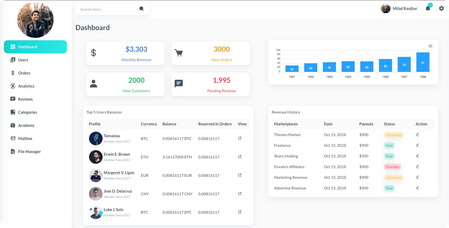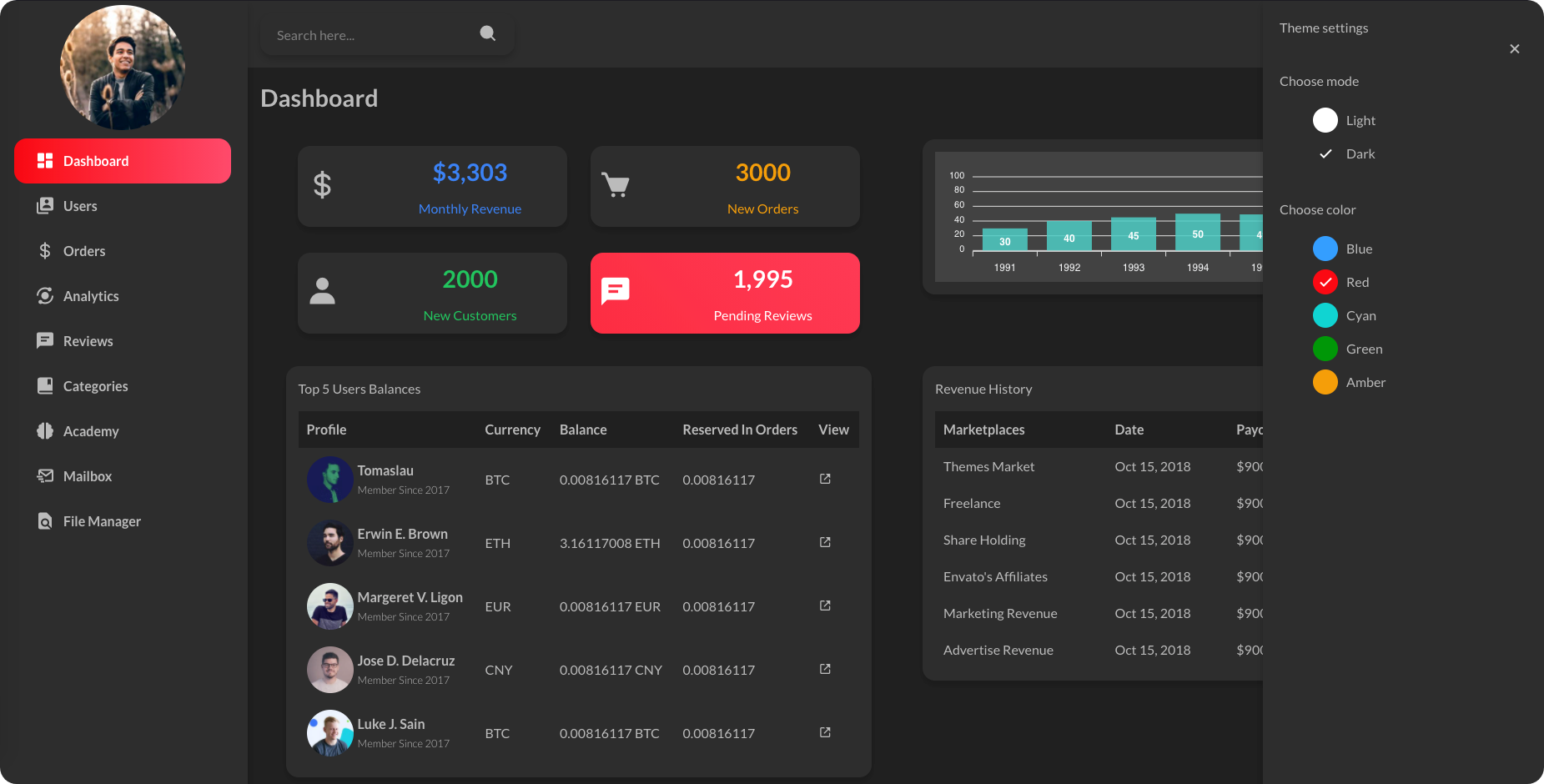 React Admin panel with multi Theme. How to Run In the project directory, you can run: yarn start Runs the app in the development mode. Open http://localhost:3000 to view it in the browser. Demo React Admin Panel