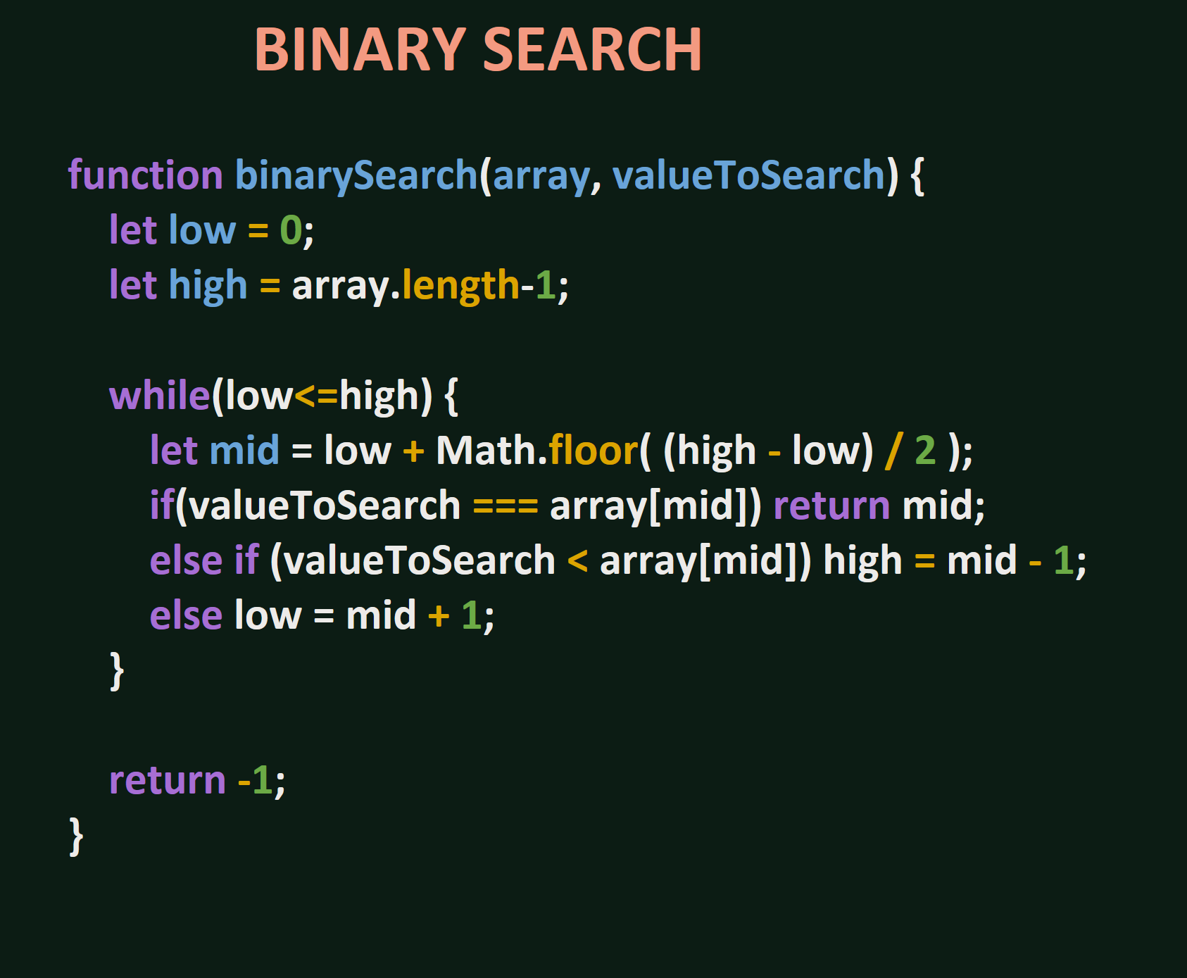 O(n)search each element of an array. Don't code for it. - Optimized =>