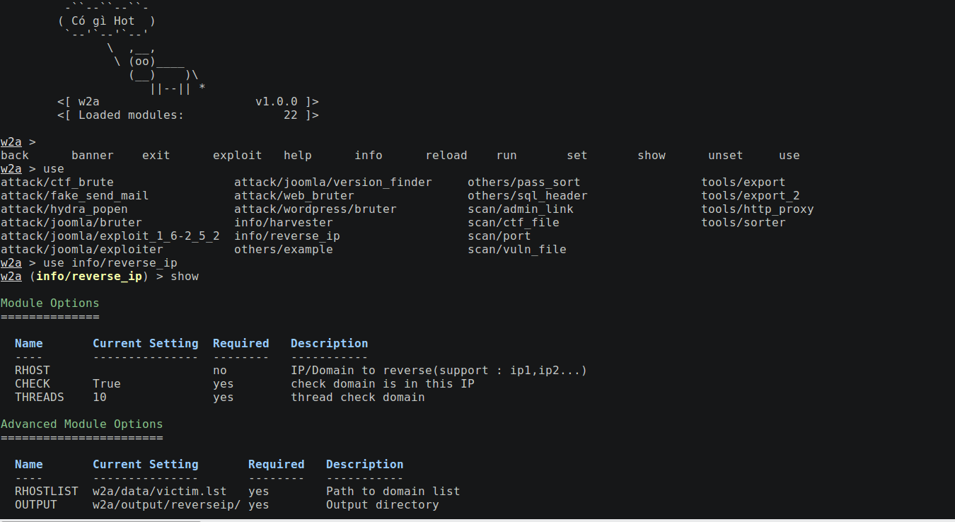 web2attack Timeline Fix bug: folder not found () Quick fix: module footprintings/domain/harvester Fix: module footprintings/domain/harvester with Google, Bing, Yahoo... Fix: module footprintings/domain/reverse_ip